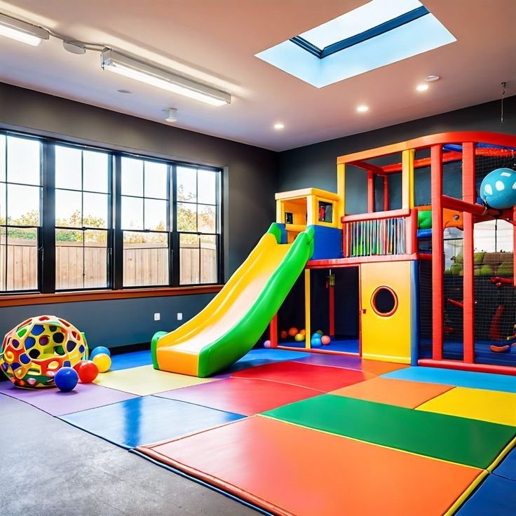 • Indoor playgrounds such as slides, climbing structures, and ball pits